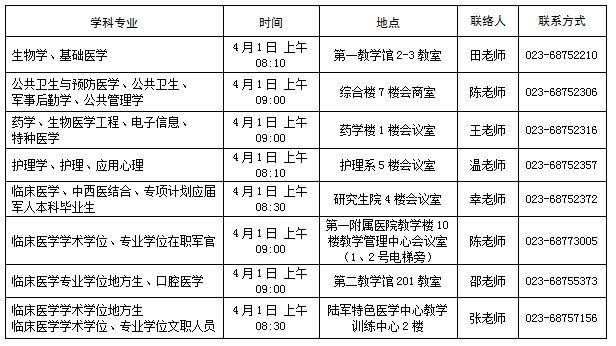 地点:陆军军医大学(重庆市沙坪坝区高滩岩正街30号)第二教学馆201、301、401教室。