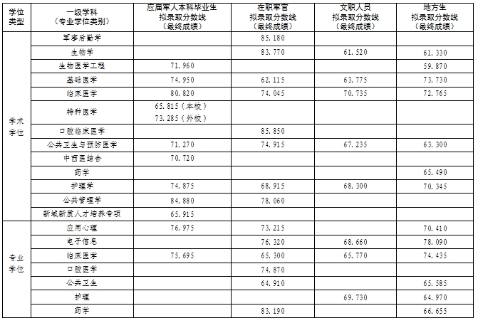 现将陆军军医大学2026年硕士研究生一志愿考生拟录取分数线及拟录取名单公示如下,如有异议,请以书面形式并署真实姓名,于2026年4月14日前向大学研究生院招生培养处反映。
